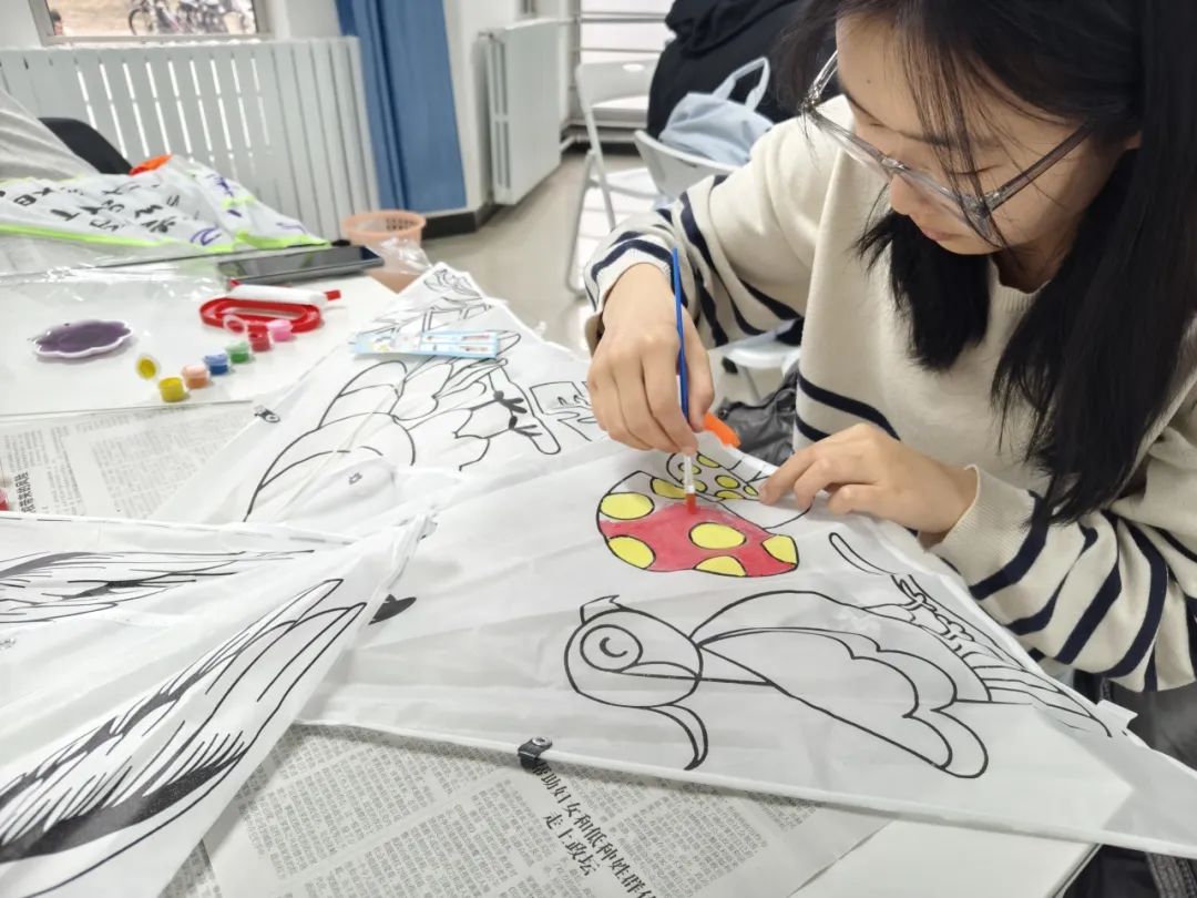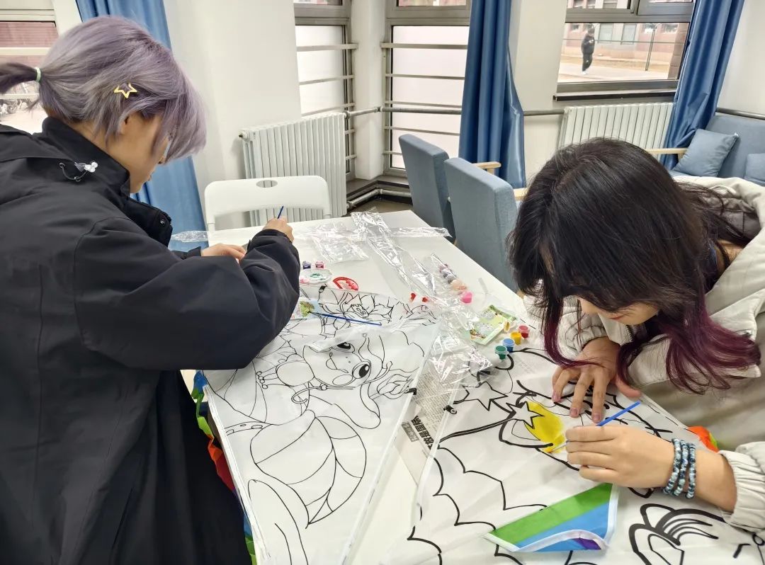 绘筝环节,空白风筝与涂鸦工具包分发至参与者手中。有人伏案专注,用橙红色调勾勒迷茫中的希冀;有人与邻座探讨笔触,笑声中晕开一抹明黄;还有人写下诗句,让风筝翅膀载满对未来的期许。活动室内,笔尖沙沙作响,焦虑随颜料流淌消散。