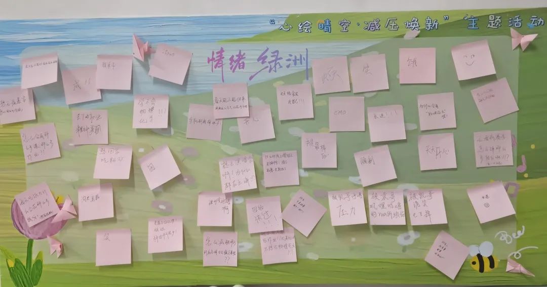 活动伊始,一面名为“情绪绿洲”的解压展板成为焦点。同学们手持彩色便利贴,在纸上倾诉学业焦虑、坦陈人际困惑,将心事化作文字,轻轻粘贴于展板之上。展板逐渐被“烦恼树叶”填满,有员工感叹:“写下的瞬间,仿佛卸下了肩上的石头。”