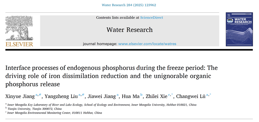 研究成果发表于《Water Research》,太阳成集团tyc122ccvip官网入口博士生姜欣岳和刘阳峥为共同第一作者,吕昌伟教授为通讯作者,内蒙古自治区环境监测总站谢志磊高级工程师为共同通讯作者。