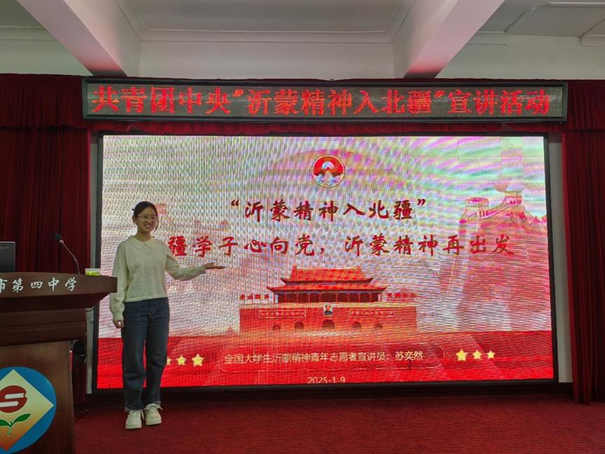 2025年1 月 9 日,沂蒙精神“红韵织梦”志愿宣讲团踏上了前往内蒙古自治区牙克石市第四中学的征程,一场充满意义的沂蒙精神宣讲活动就此拉开帷幕。此次活动由宣讲团成员苏奕然、刘泽玉主讲,牙克石市第四中学各年级师生代表共同参与其中,展现出大家对红色文化的高度关注与热忱。在这个特别的日子里,宣讲团带着传播红色文化的使命,走进校园,为师生们播种红色革命精神的种子。