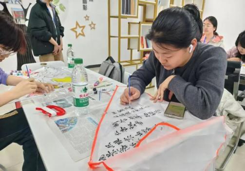 绘筝环节,空白风筝与涂鸦工具包分发至参与者手中。有人伏案专注,用橙红色调勾勒迷茫中的希冀;有人与邻座探讨笔触,笑声中晕开一抹明黄;还有人写下诗句,让风筝翅膀载满对未来的期许。活动室内,笔尖沙沙作响,焦虑随颜料流淌消散。