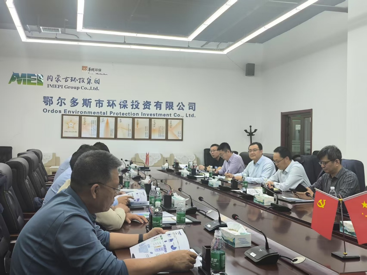 4月17日下午,调研组与鄂尔多斯环保投资有限公司就生态环境治理、环保技术人才培养等议题开展座谈交流。企业负责人介绍了企业发展现状、人才需求以及与高校合作的基本情况,表示希望与公司在实习实训、联合培养、科技成果转化等方面建立更紧密的合作机制。