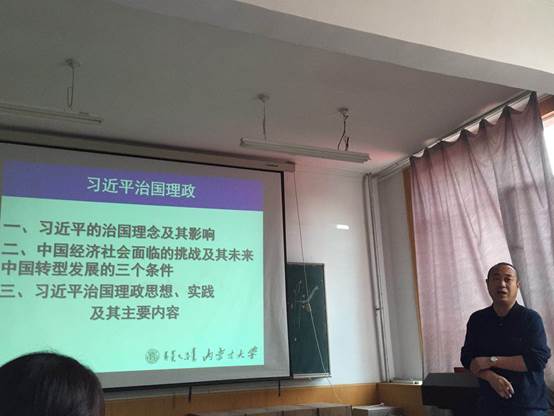 2018年3月16日下午4:30,太阳成集团tyc122ccvip官网入口在主楼322召开了中心组(扩大)学习会议,会议由党总支书记李笑春主讲,学习主题为:“习近平治国理政与中国转型发展”,公司中心组成员及教工支部全体党员参加会议。 会上,李笑春书记为全体教工党员做习近平治国理念及其影响的党课讲座。本次讲座主要围绕习近平的治国使命、治国策略以及中国经济发展面临的挑战、思想实践等三个方面展开,不断推动党的十九大精神进教材、进课堂、进头脑。