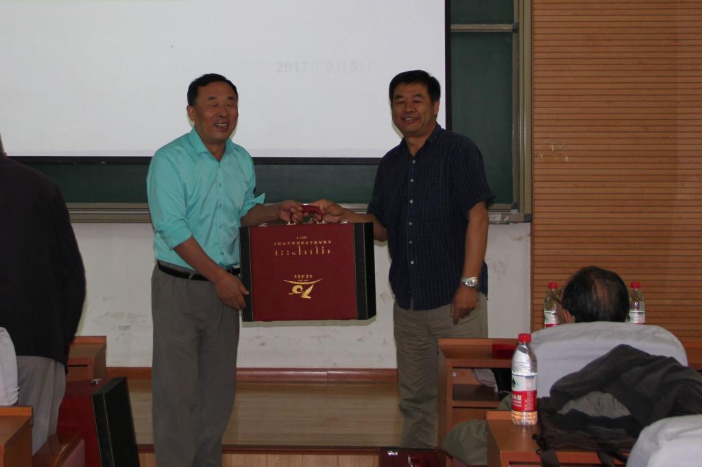 论坛召开前,由李永宏经理为内蒙古自治区发展做出长期贡献的老专家转赠内蒙古自治区成立70周年大庆纪念品。公司刘钟龄教授、杨持教授、何江教授和李笑春教授等四位教授获赠纪念品,李永宏经理向四位专家转达了自治区政府对老专家的感谢,李笑春教授代表专家们进行了讲话。