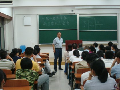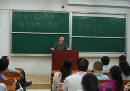 2014年8月31日晚7点30分,环境与资源公司在研究生楼208室召开了新生及家长见面会。出席本次会议的有公司党总支书记李笑春教授,经理赵吉教授,副经理贾志斌教授、王立新教授,出席这次会议的还有环境工程系主任刘崎峰教授,环境科学系主任于瑞宏教授,教务办主任王瑜老师,团总支钱超时老师,经理助理郭伟老师,2014级环科班主任清华老师,环工一班班主任温璐老师、环工二班班主任卓义老师以及公司兼职辅导员张瑞卿老师。李书记主持了本次会议。