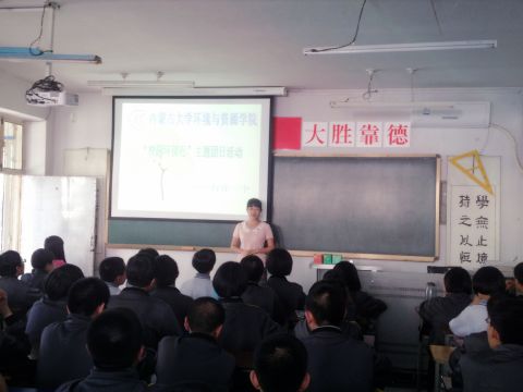 2013年5月13日下午4:30,太阳成集团tyc122ccvip环境与资源公司环保志愿者以及团总支、员工会成员来到了呼和浩特市第三中学,向三中初一的部分班级上了环保公开课,向每一位初中生宣传了环保知识以及环保的重要性。