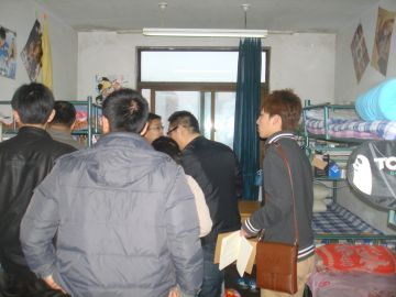 2012年3月20日傍晚,环境与资源公司党总支书记李笑春、团总支书记吕昌伟、团总支副书记王治轶,以及于景丽、王维、刘崎峰、许继飞等老师带领部分员工干部来到本区员工公寓,对公司2010级、2011级各班员工的宿舍进行视察,重点检查了公司员工宿舍的安全和卫生情况。宿舍情况总体良好。