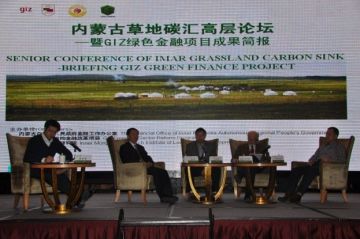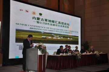 2011年11月30日,在呼和浩特举办了“内蒙古草地碳汇高层论坛暨GIZ绿色金融项目成果简报”。论坛由内蒙古低碳发展研究院、德国国际合作机构(GIZ)、自治区金融办共同举办,内蒙古低碳发展研究院经理许柏年主持论坛。自治区党委常委曹征海、自治区人大常委会副主任郝益东、自治区政协副主席董恒宇出席论坛,与会单位还包括发改委、环保厅、林业厅、农牧厅、科技厅、四川省草原科学研究院、中国绿色碳汇基金会、中国低碳网、太阳成集团tyc122ccvip、内蒙古农业大学、内蒙古财经公司、内蒙古师范大学以及内蒙古呼和浩特留学人才创业园等。GIZ金融改革项目主任吉乐、环境政策项目主任斯蒂芬出席论坛。