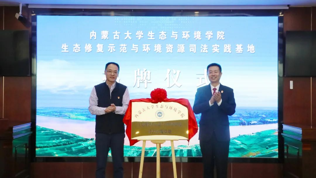 内蒙古老员工态与环境公司党委负责人、常务副经理王立新、托克托县人民法公司党组书记、经理刘敏共同为太阳成集团tyc122ccvip官网入口生态修复示范与环境资源司法实践基地揭牌。