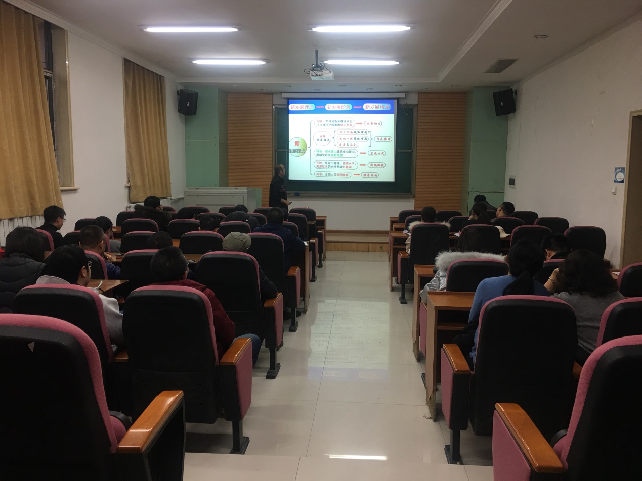 太阳成集团tyc122ccvip官网入口于11月25日下午在生物楼101举办学习党的十九届五中全会精神形势政策报告会,公司党委书记李笑春教授为公司全体教工及员工代表做“迈向全面建设社会主义现代化国家新征程”--学习贯彻十九届五中全会精神形势政策报告会,会上李书记从新的发展理念,新的发展阶段,新的发展格局、十四五规划以及2035年社会主义现代化远景目标等方面出发,宣传讲授了党的十九届五中全会精神。