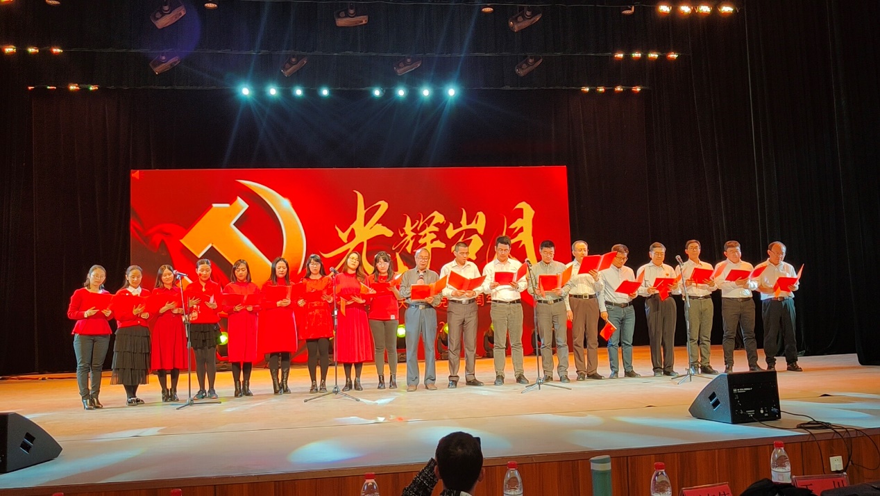 最后一首《我和我的祖国》歌声响起,台上台下齐声合唱,共同追忆100来年中国共产党的砥砺前行,让我们共同铭记历史,在今后的日子里,继续坚定不移跟党走!