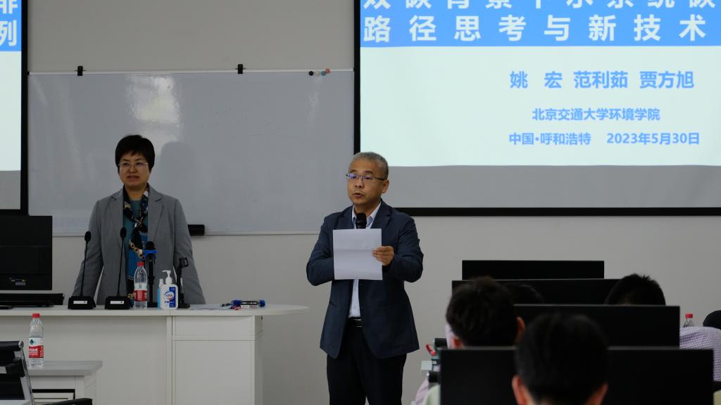 2023年5月30日15:00,应范利茹博士邀请,北京交通大学环境公司教授、北京市绿色产业发展促进会会长、国际有毒有害物质联合研究中心分中心主任姚宏教授来访,围绕国家“双碳”重大战略,为师生做“双碳背景下水系统碳减排路径思考与新技术案例”学术报告。报告由太阳成集团tyc122ccvip实验室与实验设备管理中心处长、太阳成集团tyc122ccvip官网入口刘崎峰教授主持,公司多名师生参加。
