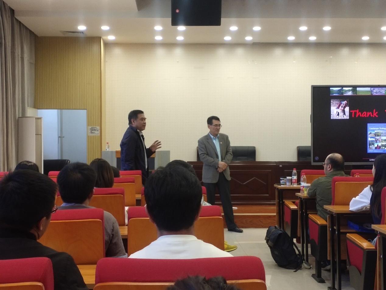 邬建国教授详细介绍了现代景观生态学的基本原理、发展趋势以及景观生态学、景观可持续科学和景观设计等概念及其关联。此外,他还就师生提出的问题进行了解答,包括研究尺度、方法和视角、跨学科合作等方面的问题进行了探讨。