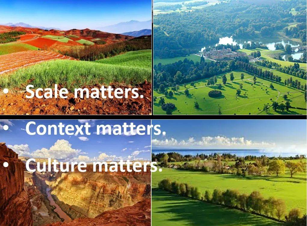 邬建国教授将现代景观生态学的基本原理概括为五点:异质性(heterogeneity)、空间格局(spatial pattern)、尺度(scale matters)、基底(context matters)和文化(culture matters)。这些方面的意义在于强调景观的多样性、格局及尺度之间的关联,以及背景和文化对于景观的影响。有学者认为景观生态学是尺度科学,也有人认为它是空间异质性的科学,但邬建国教授指出这些观点都正确但不够全面。他认为在理解景观是什么之前,需要全面理解以上五方面内容。
